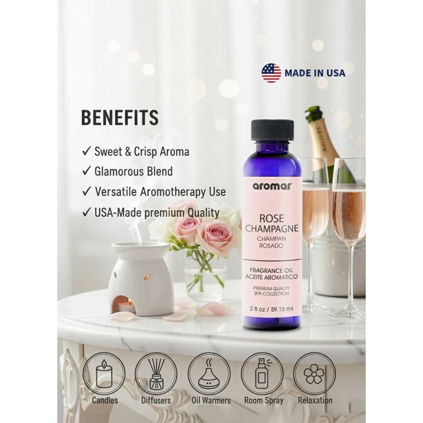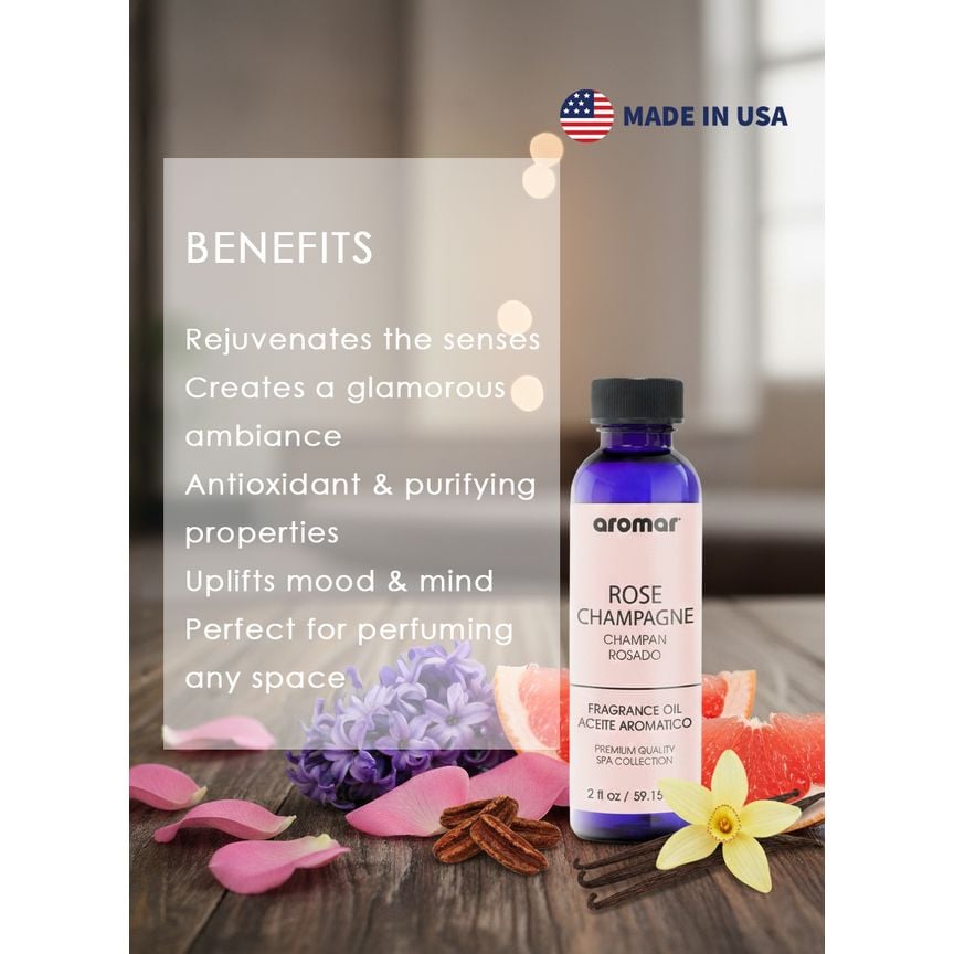Aromar Spa Aromatic Oil – Rose Champagne Fragrance, 59.15ml | Luxurious Floral & Sparkling Essential Oil for Diffusers, Humidifiers & Candles | Romantic, Long-Lasting Home Aroma for Celebration & Relaxation