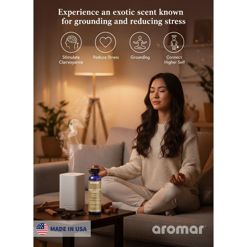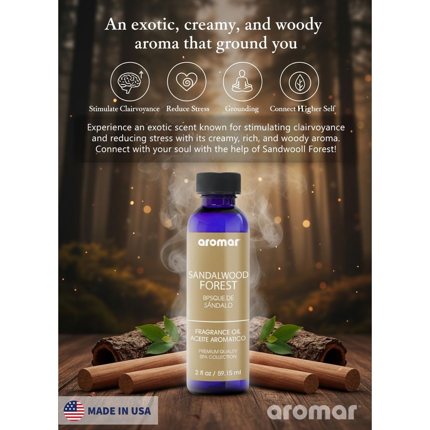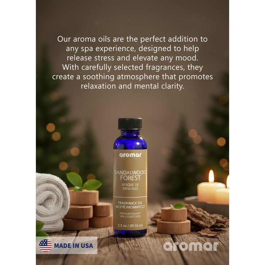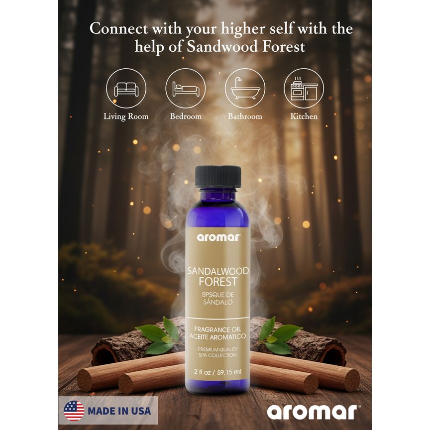 Aromar Spa Aromatic Oil – Sandalwood Forest Fragrance, 59.15ml | Warm, Woody & Calming Essential Oil for Diffusers, Humidifiers & Candles | Luxury Home Aroma for Relaxation, Meditation & Balance