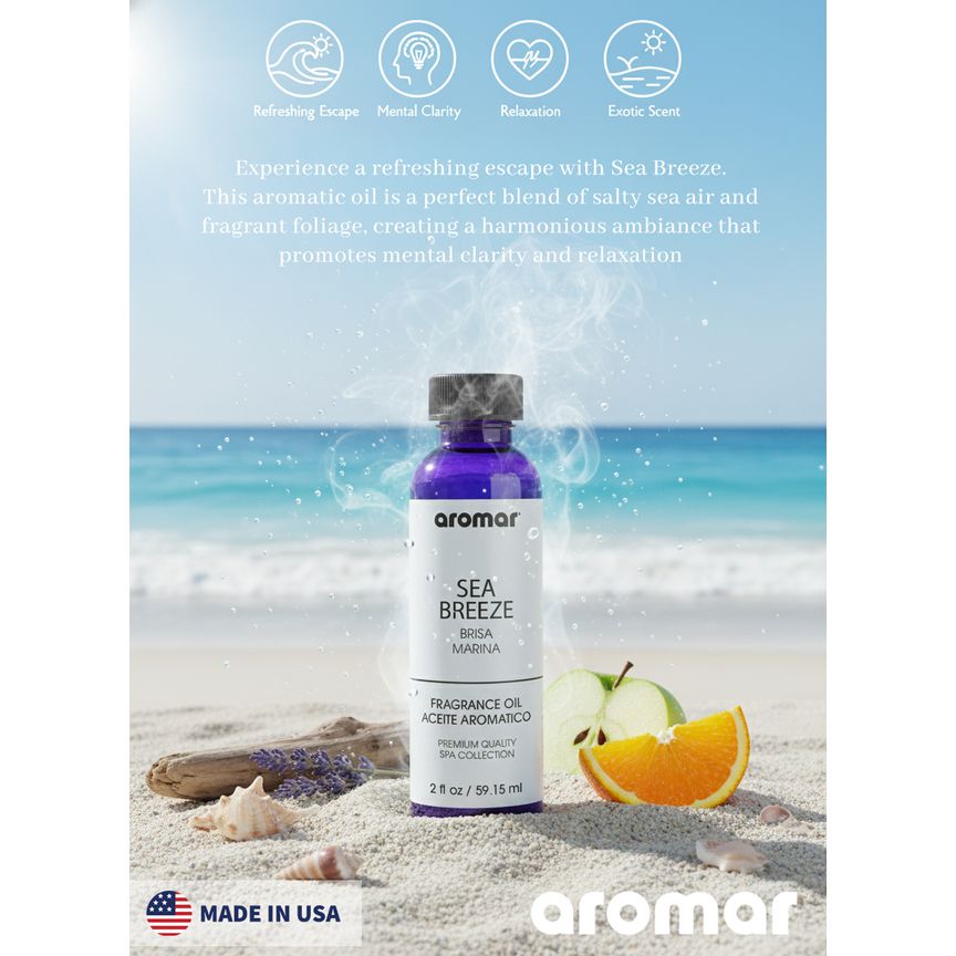 Aromar Spa Aromatic Oil – Sea Breeze Fragrance, 59.15ml | Fresh Ocean-Inspired Essential Oil for Diffusers, Humidifiers & Candles | Clean, Revitalizing Aroma for Home, Spa & Relaxation