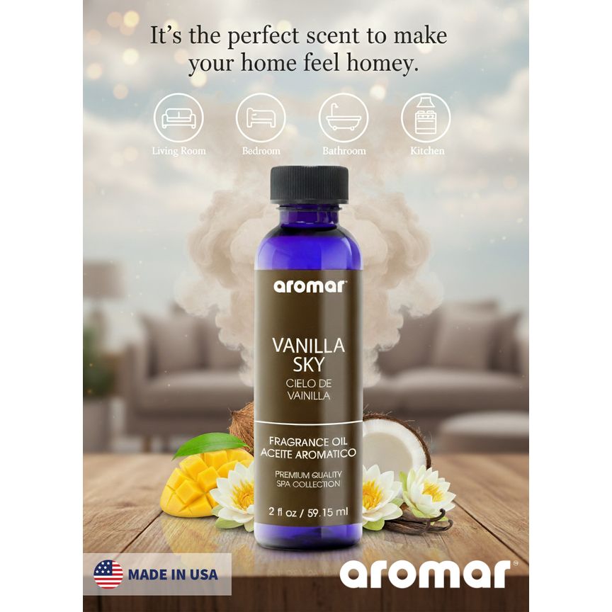 Aromar Spa Aromatic Oil – Vanilla Sky Fragrance, 59.15ml | Warm, Sweet & Soothing Essential Oil for Diffusers, Humidifiers & Candles | Cozy Home Aroma for Relaxation, Comfort & Luxury Ambiance