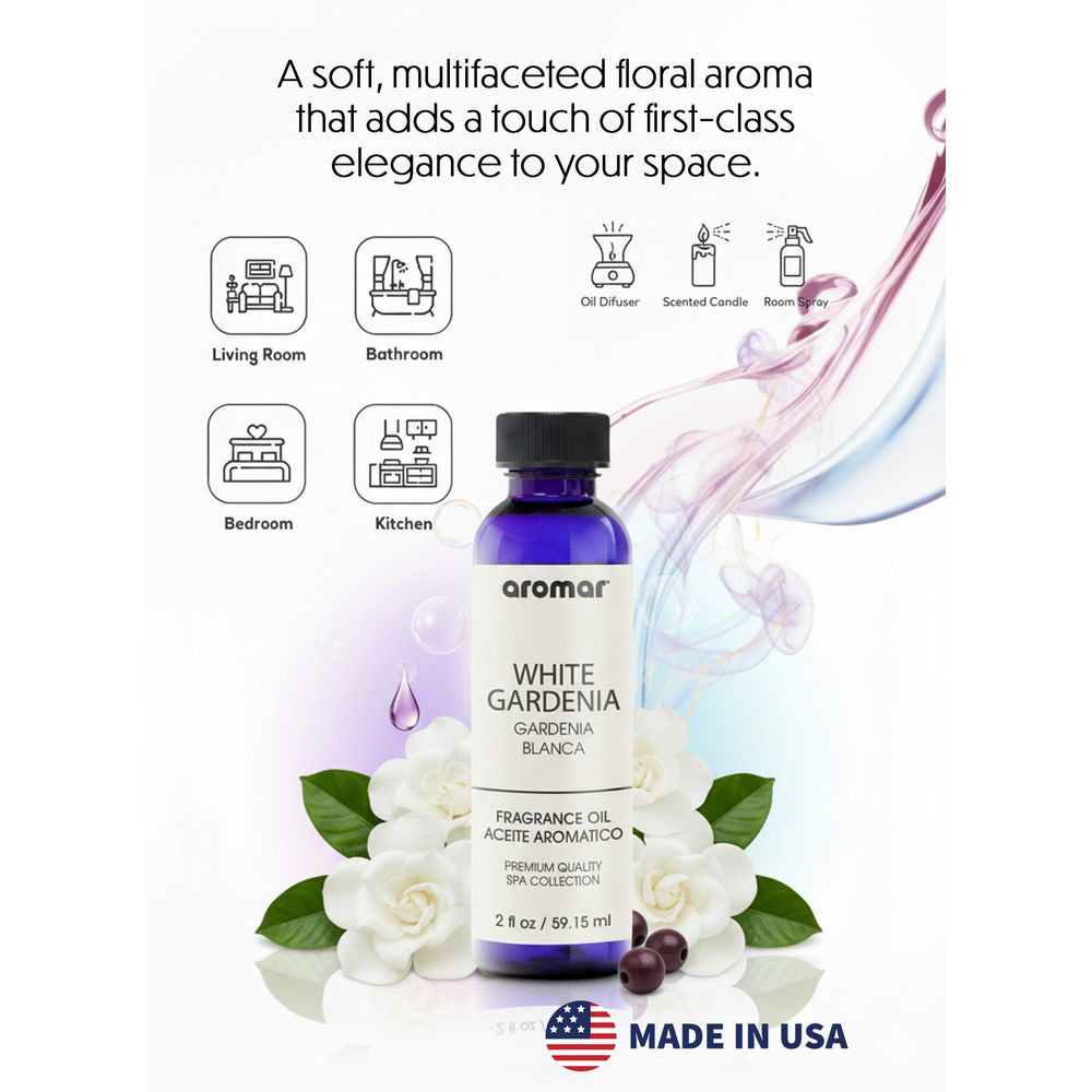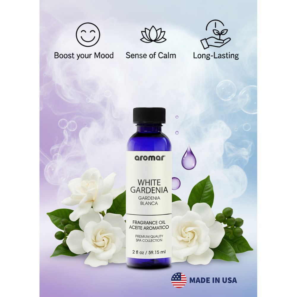 Aromar Spa Aromatic Oil – White Gardenia Fragrance, 59.15ml | Elegant Floral Essential Oil for Diffusers, Humidifiers & Candles | Romantic, Long-Lasting Home Aroma for Calm, Comfort & Relaxation