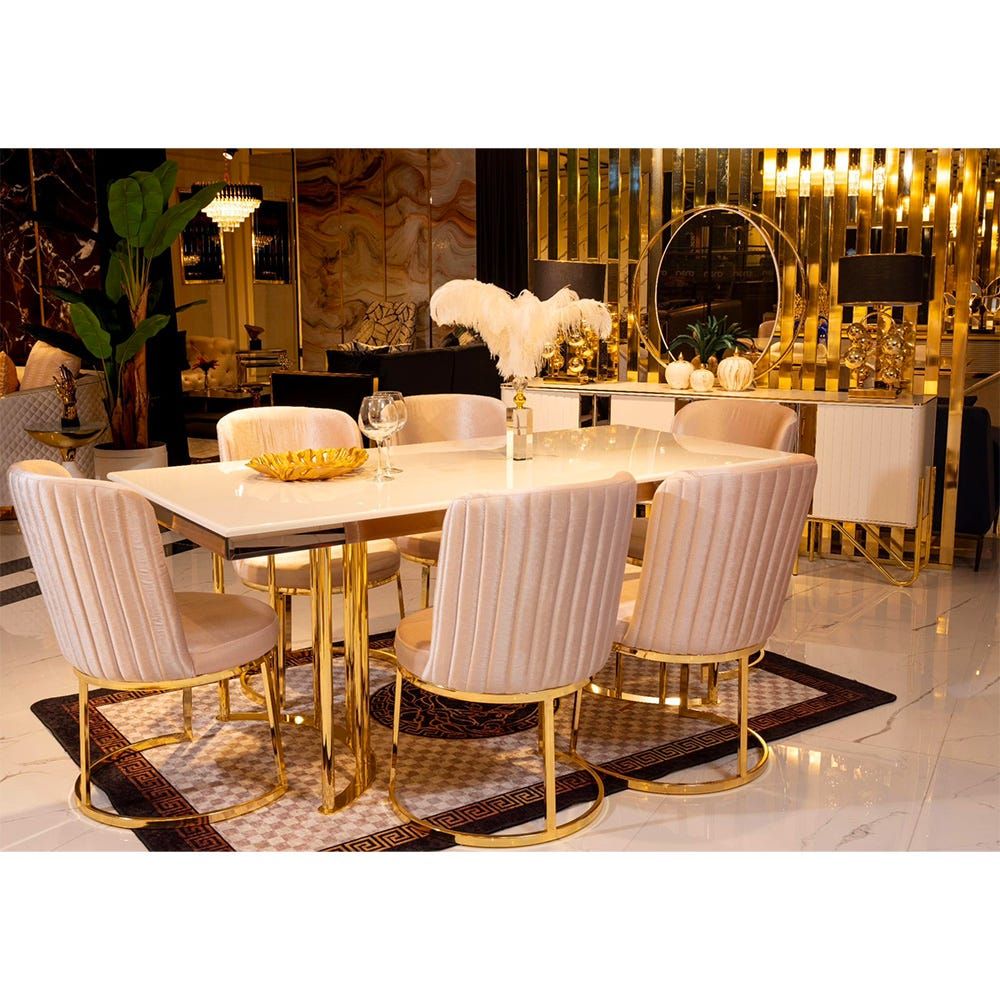 طقم سفرة أرورا 1+6 - كريمي/ذهبي