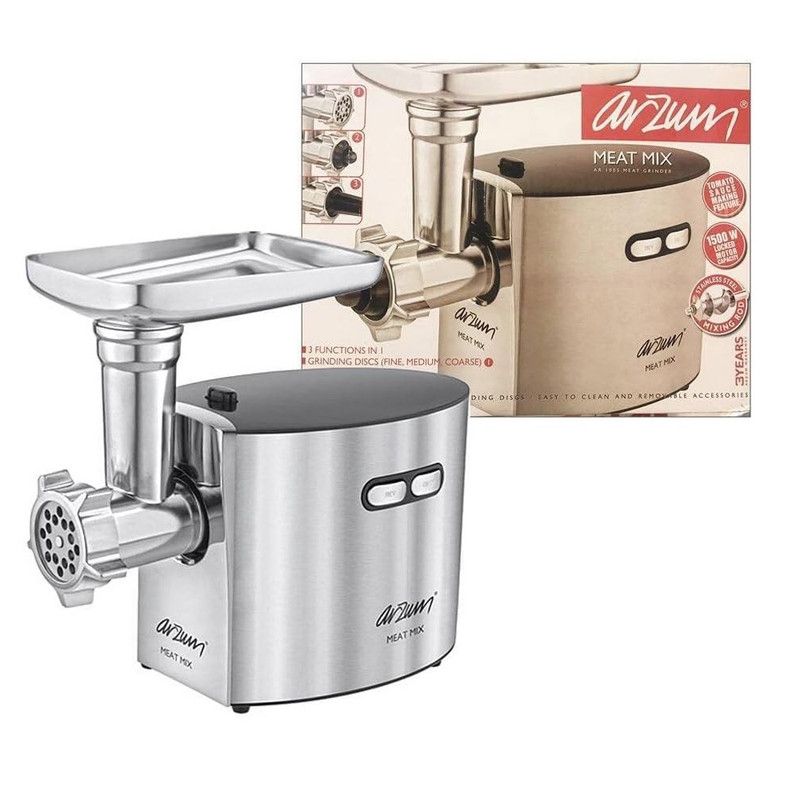 Arzum AR1132 Meat Mix Meat Grinder 1500 Watts 3 Functions Stainless Steel 3 Discs Silver Color Model