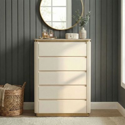 Ashton Dresser With Mirror And Stool-Beige/Brushed Gold