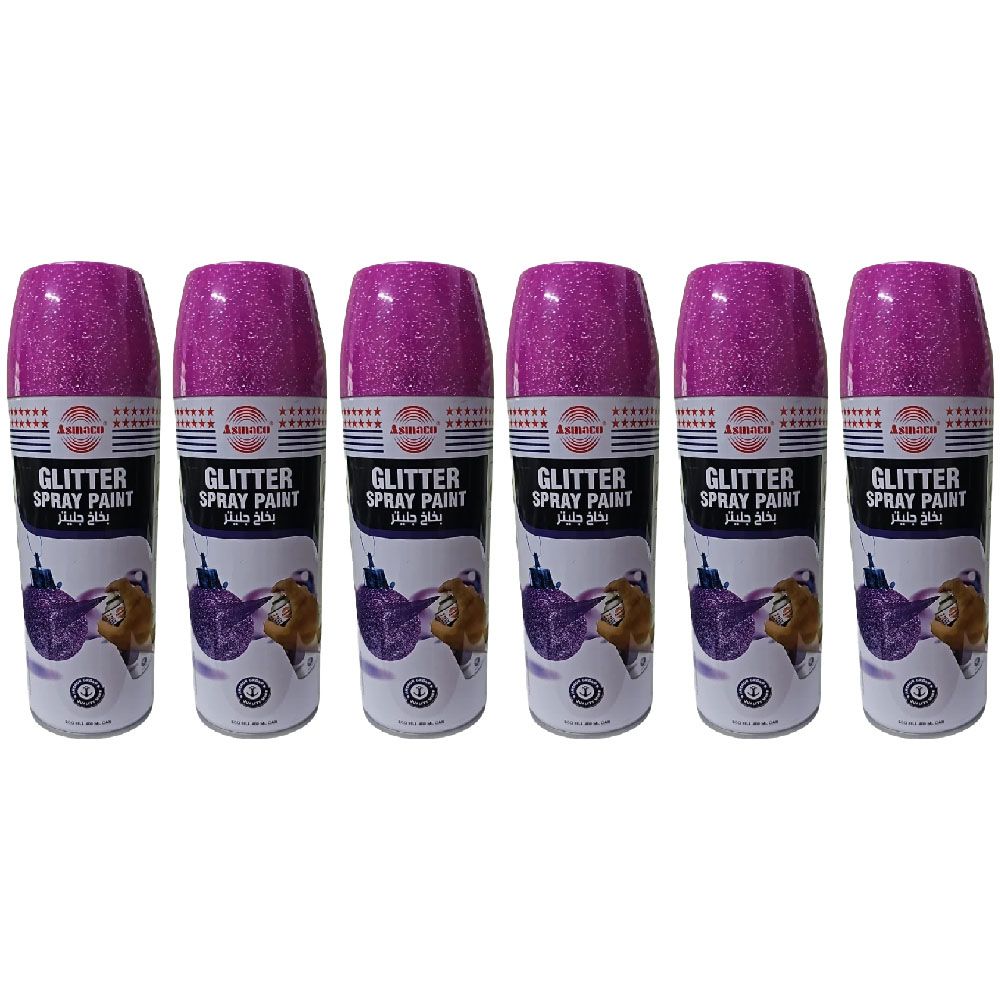 Asmaco Glitter Spray Paint - Purple - 400 Ml - Set of 06