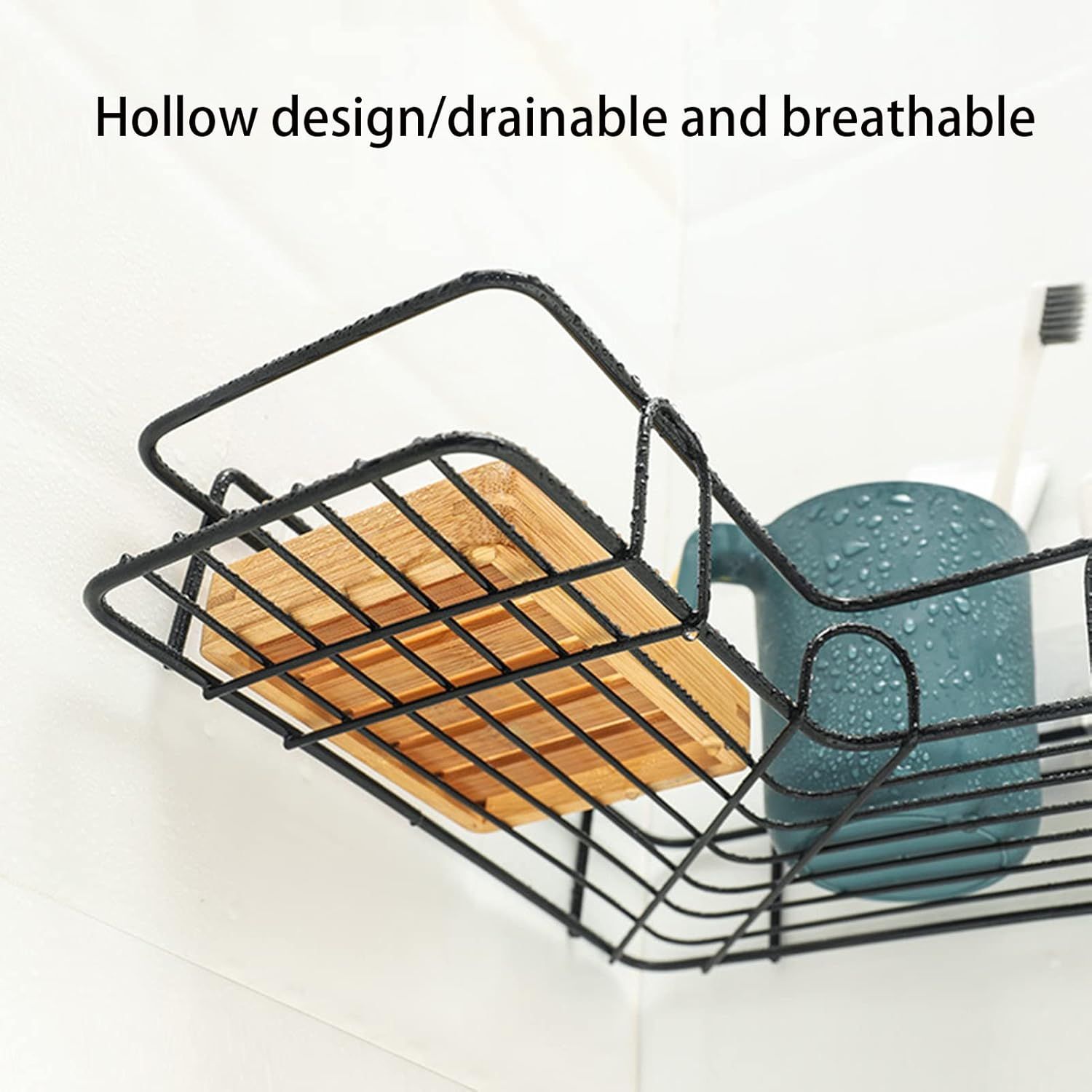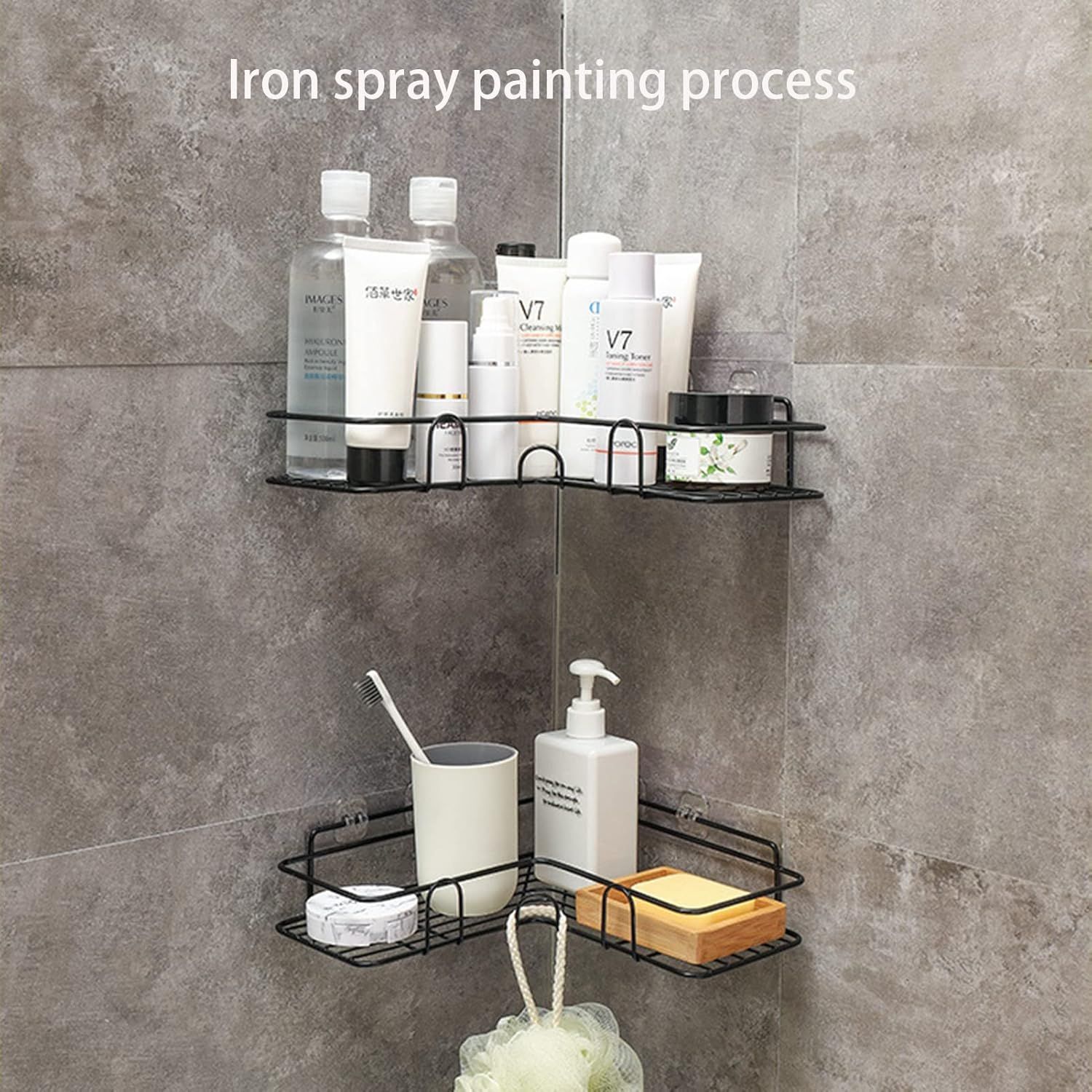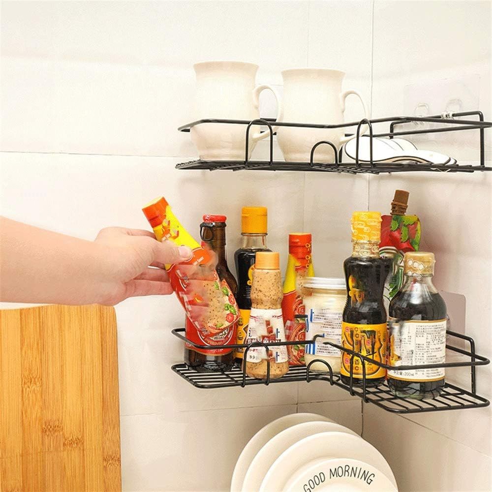AtrauX 2-Pcs Corner Frame Shelf, Shower Organizer Shelves for Kitchen Bathroom (Black)