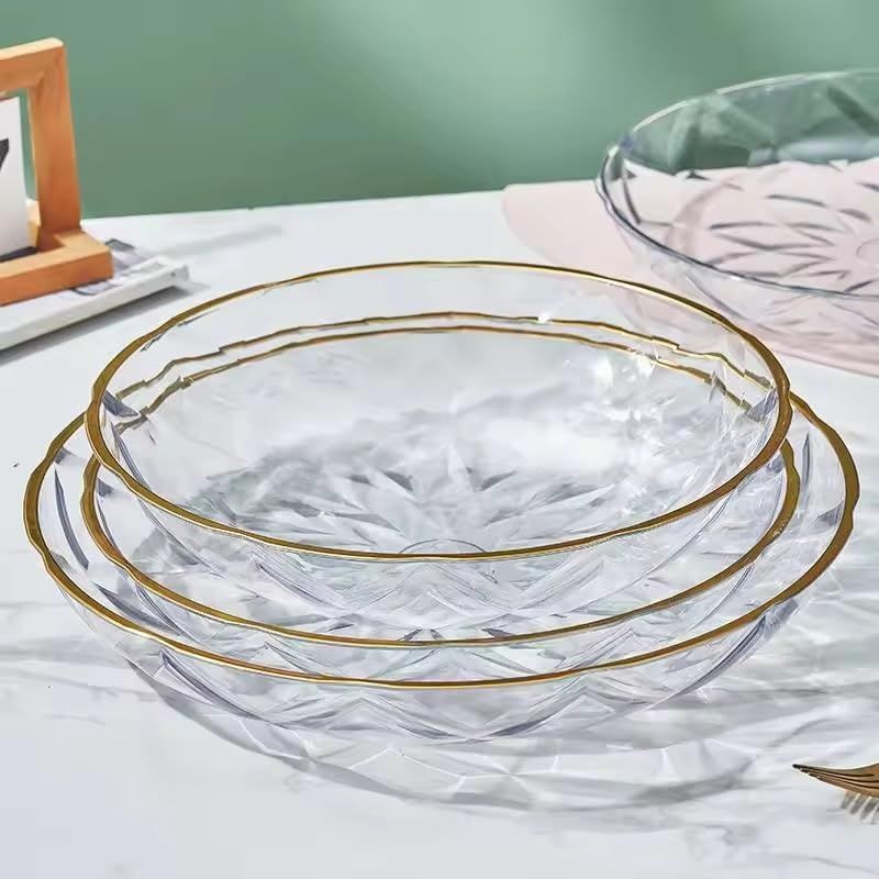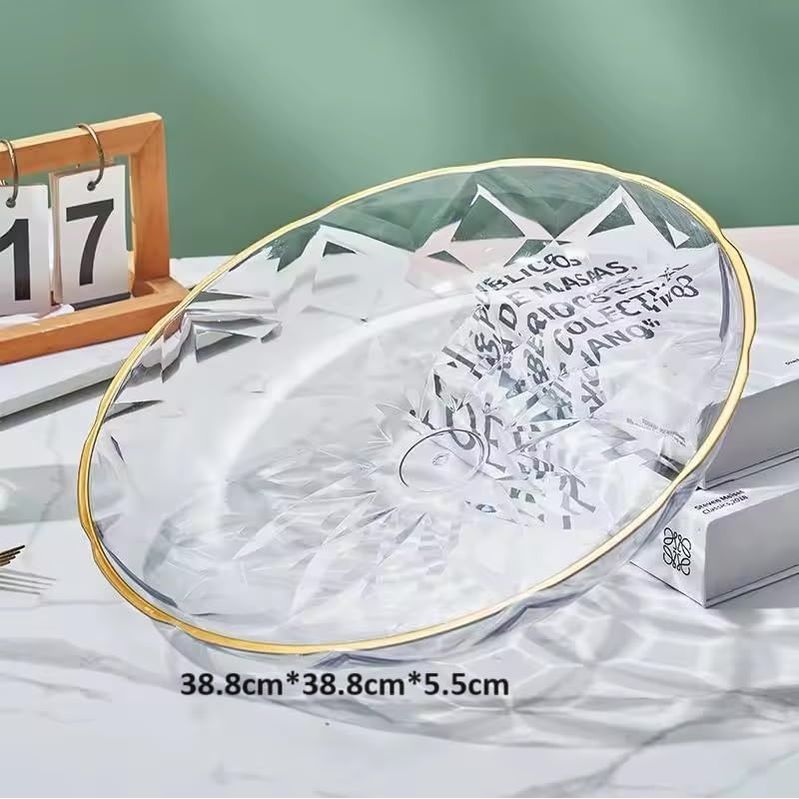 AtrauX Clear plastic Snack Round Serving Tray Set for Food Cake Cookie Fruits Dried Fruit Dessert 3-PCS (S/M/L)