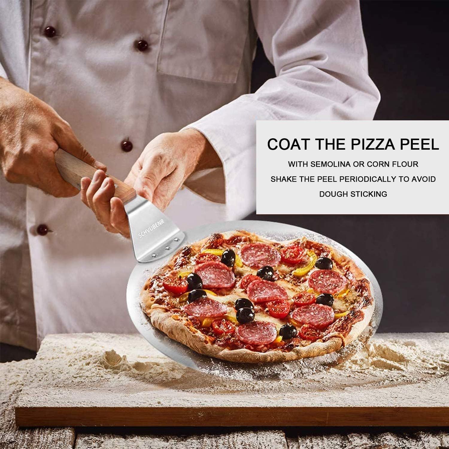 AtrauX Pizza Peel Paddle Shovel with Wooden Handle Pizza Stove