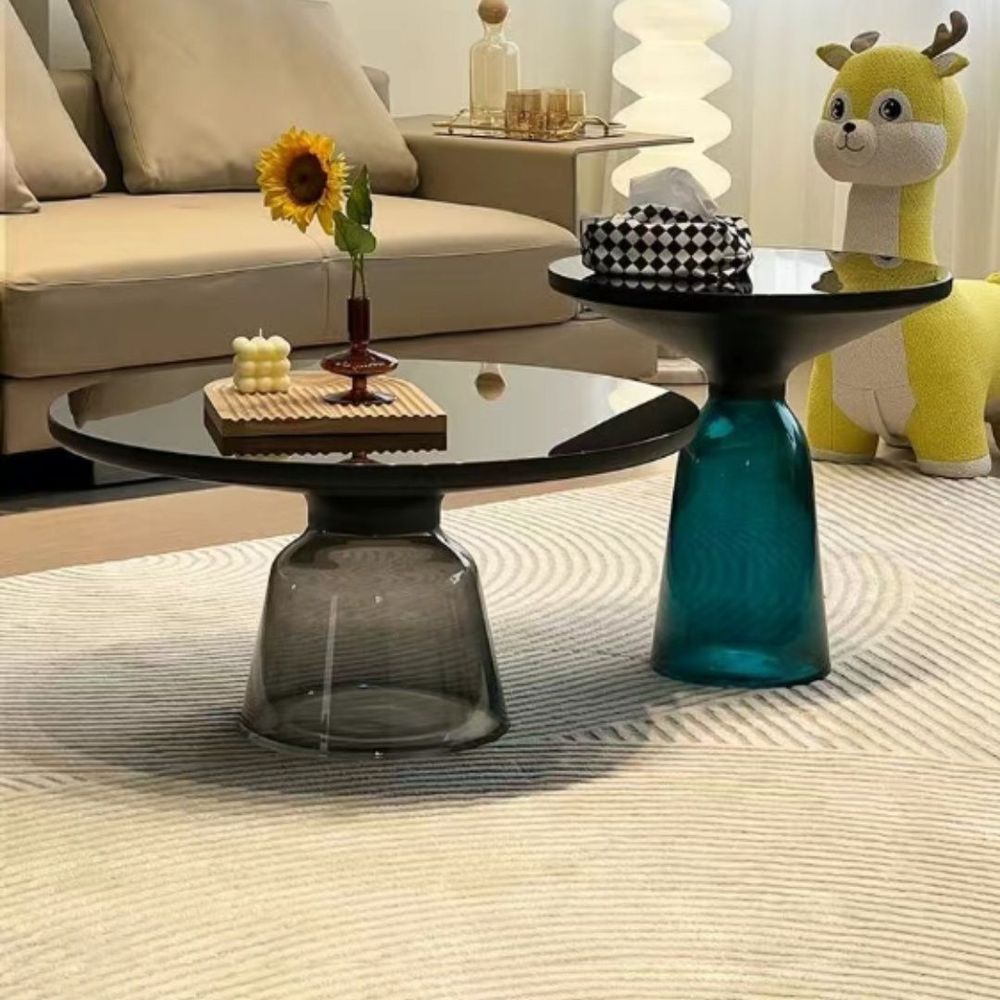 Unique Glass Base Colors: The larger table has a gray-tinted glass base, and the smaller one has a blue-tinted glass base, creating a unique and stylish contrast.