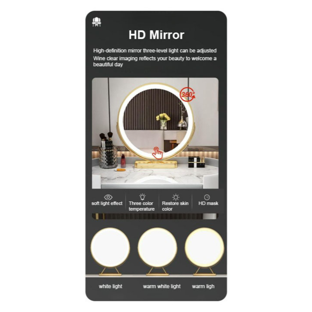 【Tri-color Light Source Mirror】Vanity unit with lights. The included mirror provides ample size and clarity for perfecting your makeup or hair. The mirror has 3 different settings: natural light, cold light, warm light, can provide excellent mirror reflection clarity. Adapt to different make-up looks.