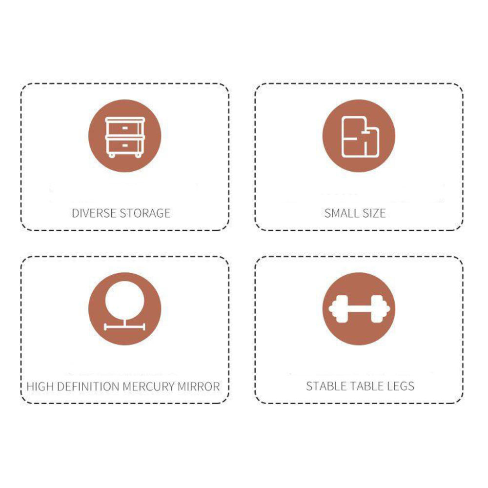 Package Include: 1× Dresser, 1× Makeup Mirror, 1×Chair, 1×Storage Drawers.