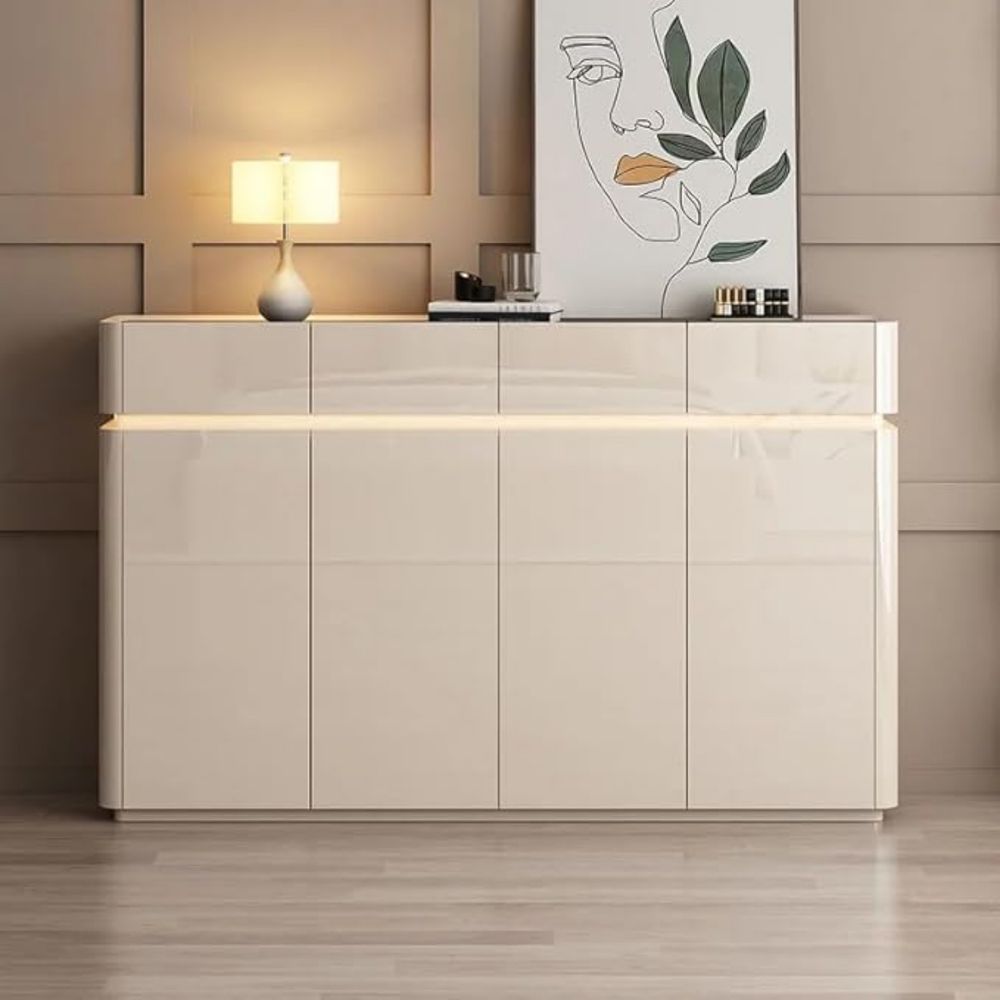 Elevate your home organisation with this sophisticated shoe storage cabinet featuring a modern, minimalist design. The sleek cream-white exterior houses four spacious doors with adjustable internal partitions, perfect for accommodating your footwear collection.