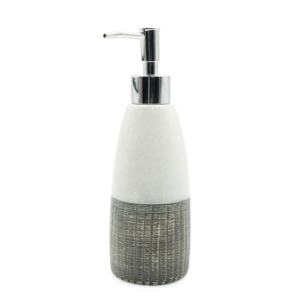 Beram Ceramic Soap Dispenser White & Grey with Dotted Line Design Refillable Lotion or Soap Pump Bottle Rustic Handmade Look for Bathroom & Kitchen Countertops