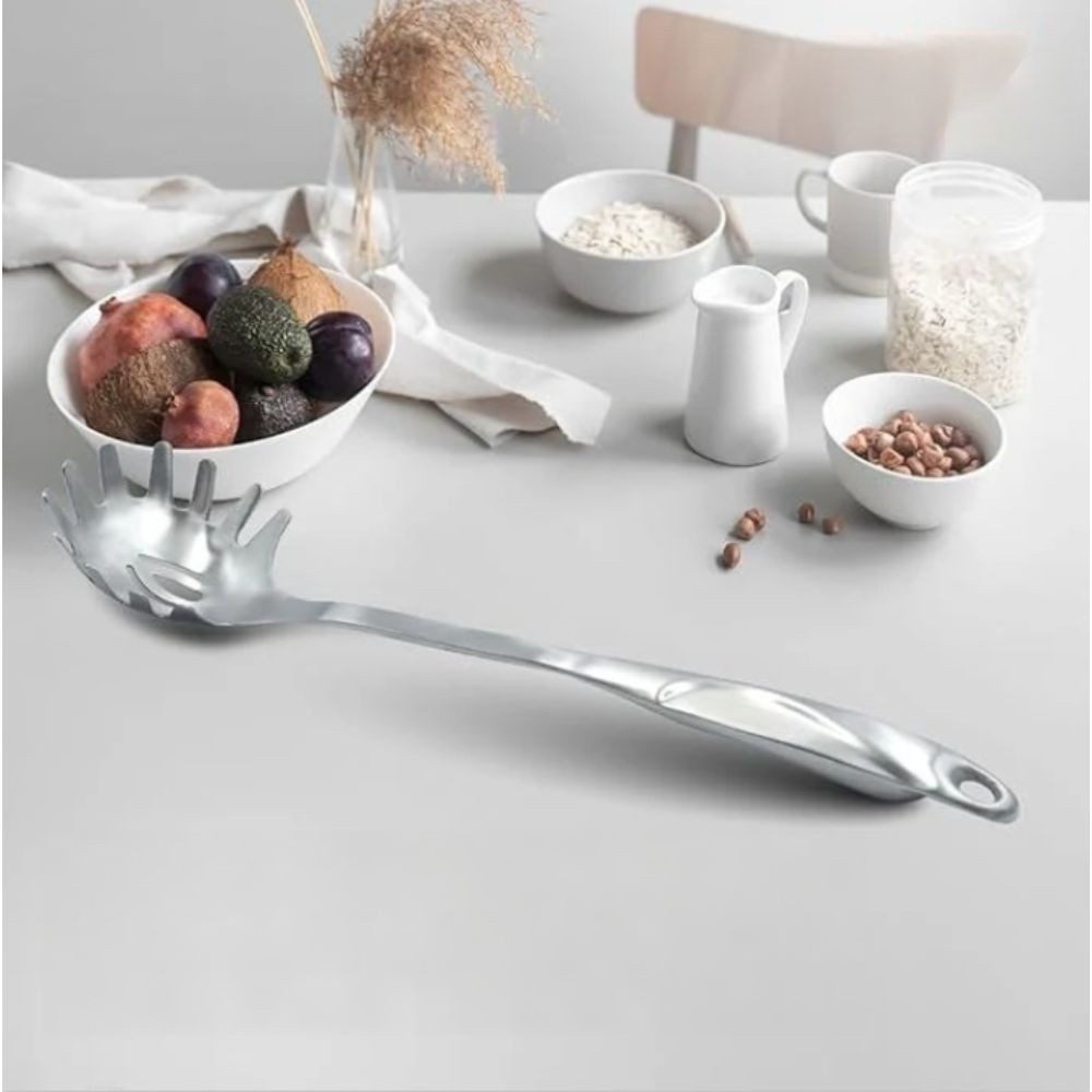 Introducing the ultimate kitchen essential – the S-shaped pasta server crafted from premium 304 stainless steel. This spatula is designed to elevate your culinary experience, combining functionality with elegance. Crafted from high-quality, 100% food-grade stainless steel material, it ensures durability and longevity, resisting deformation and breakage even after long-term use. Compact and lightweight, this spatula is easy to maneuver and store, saving valuable space in your kitchen. The mirror-finished surfaces and sleek silver color exude a noble and charming atmosphere, adding a touch of sophistication to your cooking endeavors. Whether you're tossing pasta, serving salads, or plating delectable dishes, this versatile spatula ensures effortless and efficient handling. With its non-stick properties, it glides smoothly over cookware surfaces, making it a dream to use. Embrace culinary excellence with this S-shaped pasta server, a harmonious blend of functionality and style that will elevate your cooking experience to new heights.