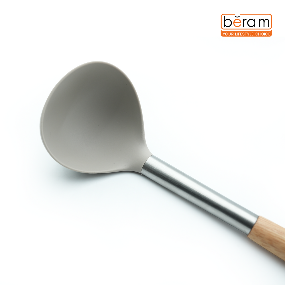 Beram Silicone Kitchen Utensil Set Heat-Resistant Cooking Tools With Stainless Steel & Wooden Handles Bpa-Free, Non-Stick Safe For Cooking Baking & More.(Beije) (Single Soup Ladle)
