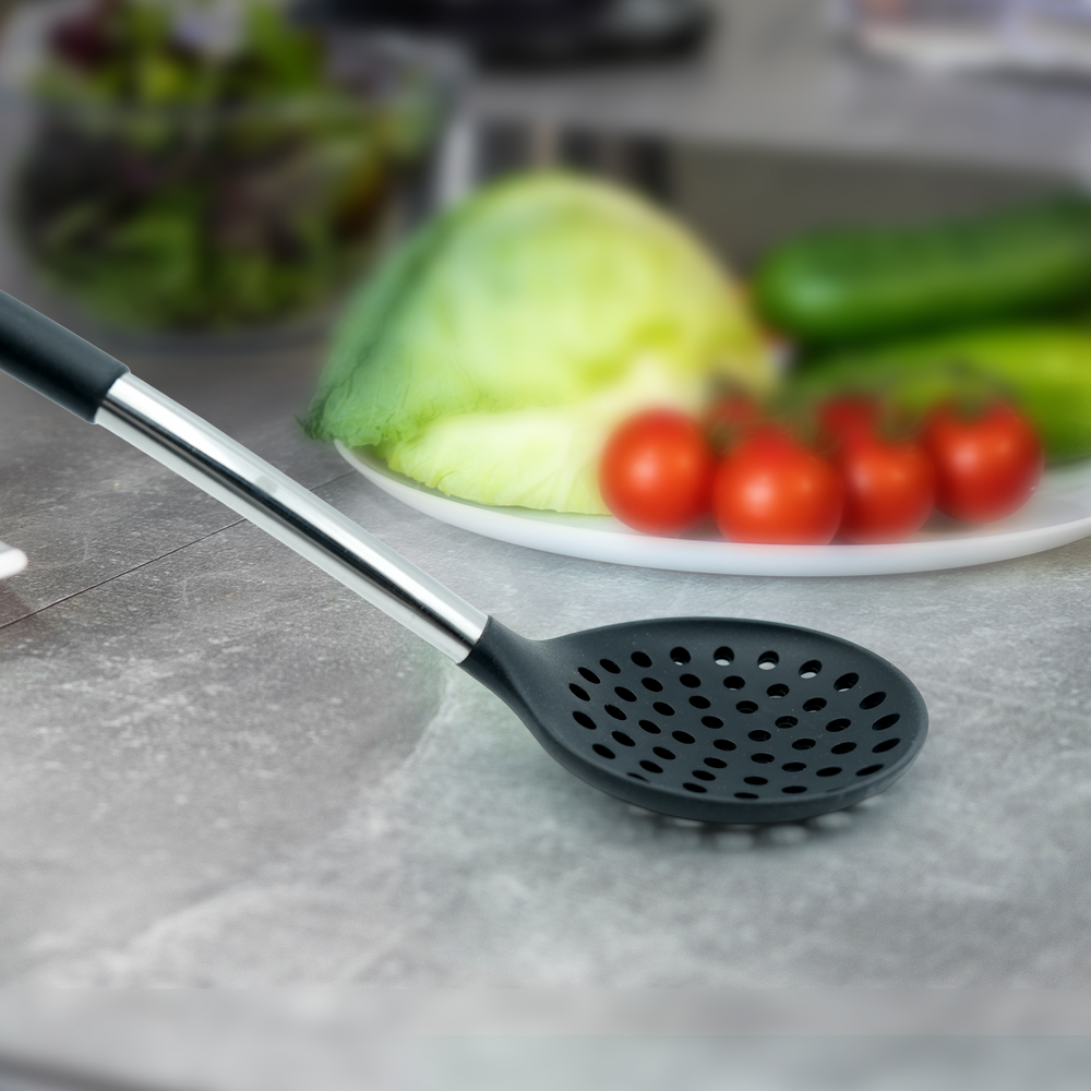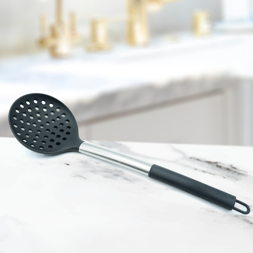The non-stick safe silicone material protects cookware surfaces from scratches, while the ergonomic, anti-slip handle offers a comfortable and secure grip. Easy to clean and dishwasher safe, it also features a convenient hanging loop for effortless storage. Whether you're a home cook or a professional, the Beram skimmer spoon makes cooking cleaner, quicker, and more efficient.