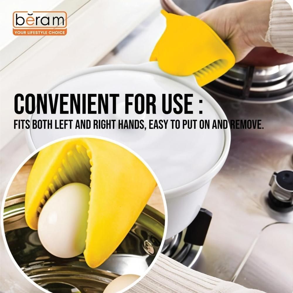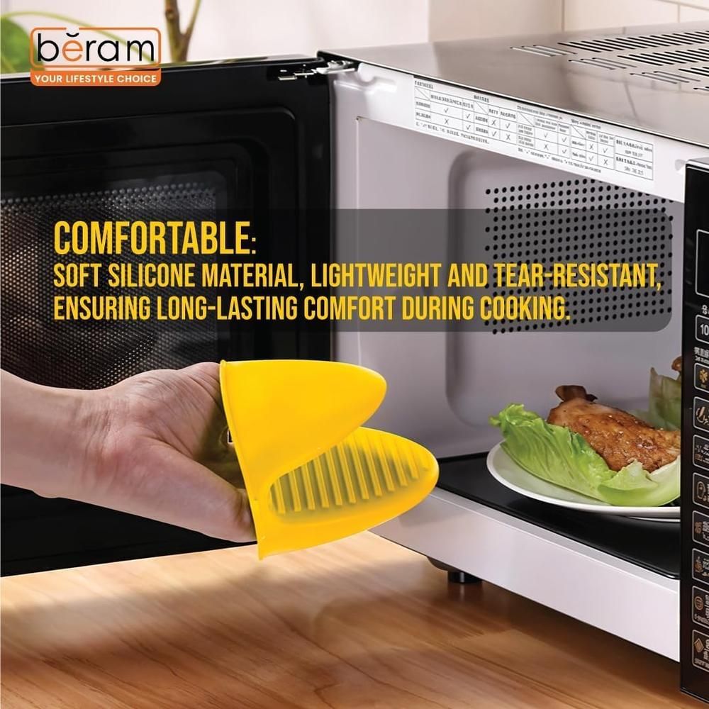 BERAM Silicone Yellow Mini Oven Mitts, Set of 2, Kitchen Pot Holders, Heat Resistant, Small Kitchen Mitts, Air Fryer Mitts Mini, Pot Pinch Grip for Cooking and Baking