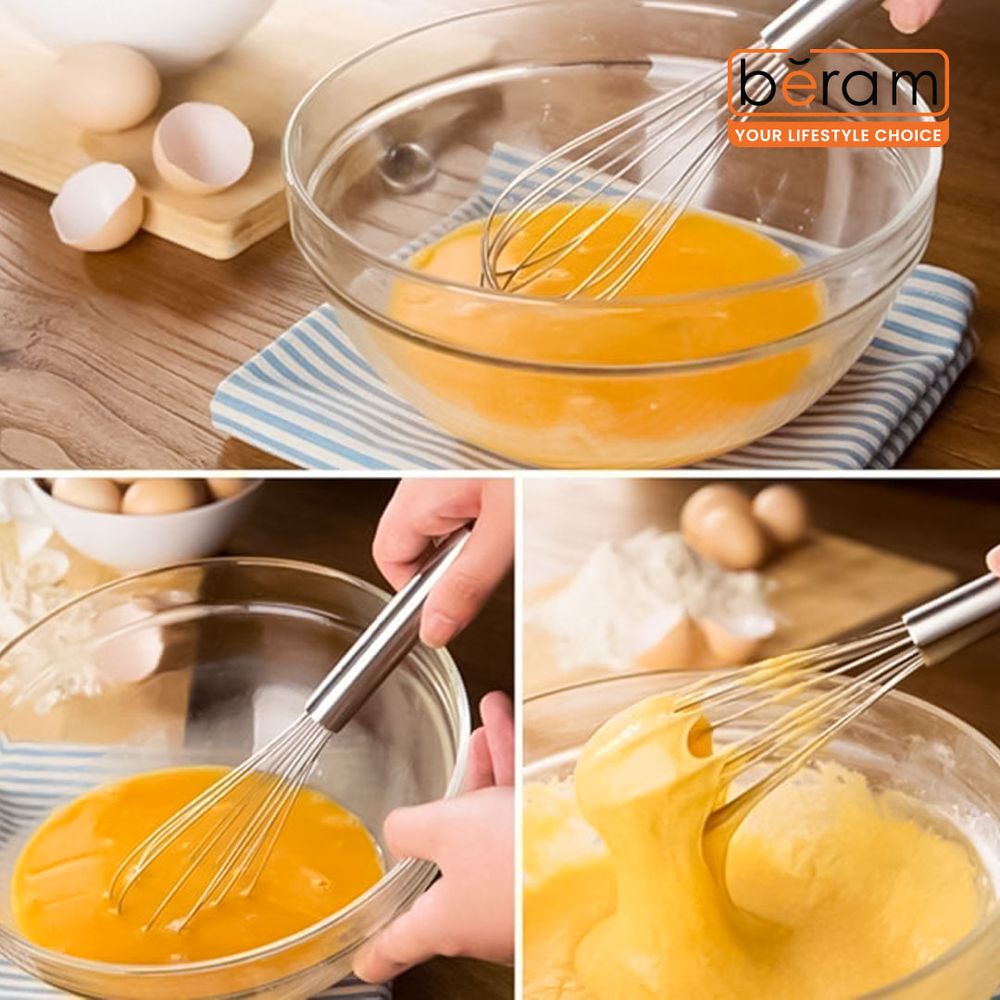 Whip up culinary creations with ease using the Beram Silicone Whisk, thoughtfully engineered for effortless mixing, beating, and whipping. The flexible, food-grade silicone wires protect your non-stick cookware, while the sturdy stainless steel handle offers a secure, comfortable grip. Heat resistant and non-stick, this whisk is perfect for blending eggs, sauces, batters, and creams. Easy to clean and hygienic, it’s an essential addition to any modern kitchen.
