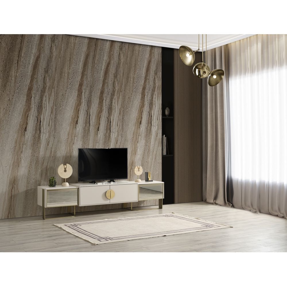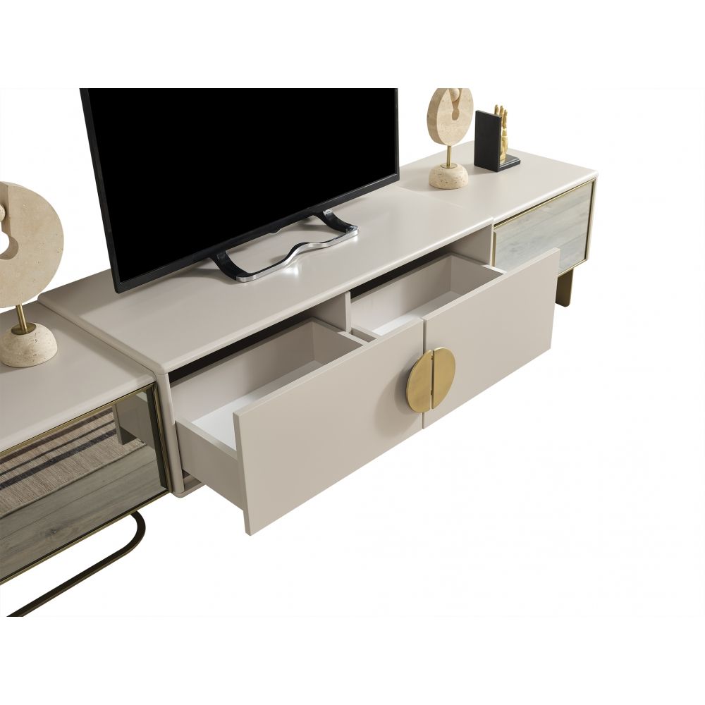 Berlin Tv Unit - Powder Beige/Mirror/Gold