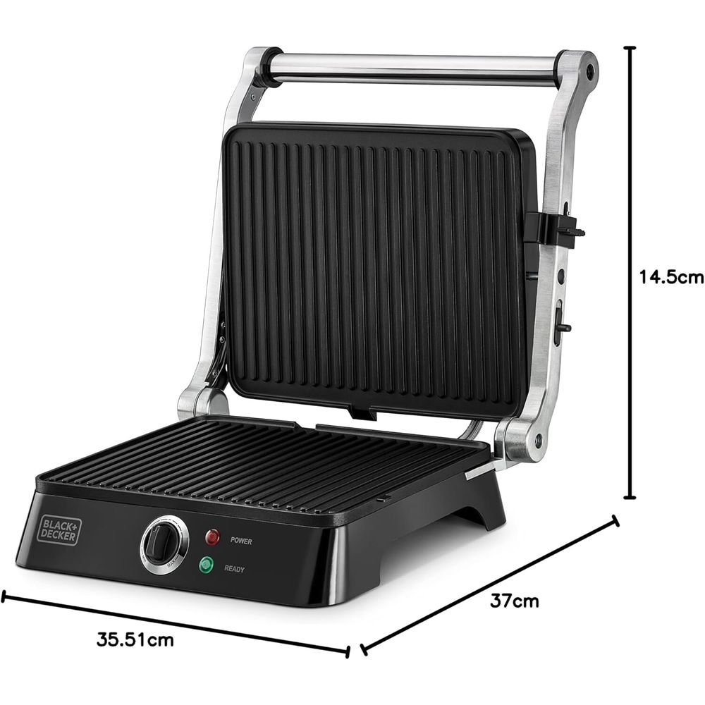 Black + Decker 1400W Contact Grill With Full Flat Grill For Barbecue Cg1400-B5 - 2 Years Warranty