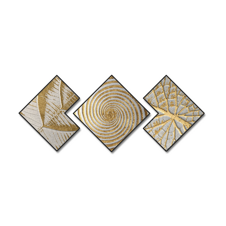 مجموعة لوحات حائط هندسية باللونين الأسود والذهبي مكونة من 3 قطع