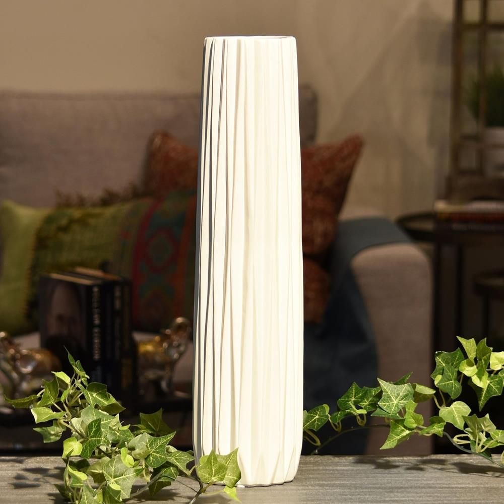 Urban Trends Ceramic Elongated Round Vase with Round Lip and Ribbed Body