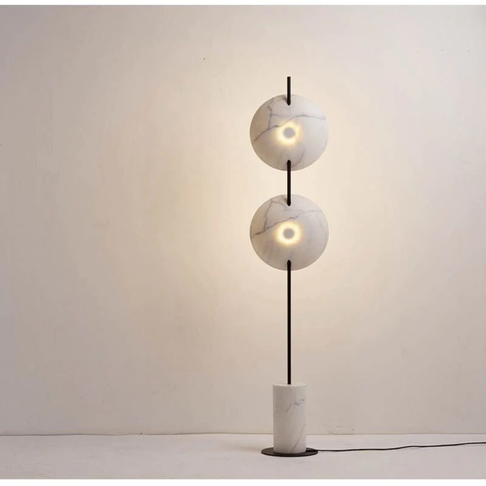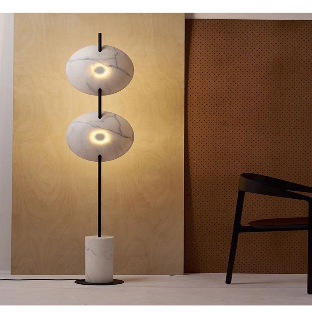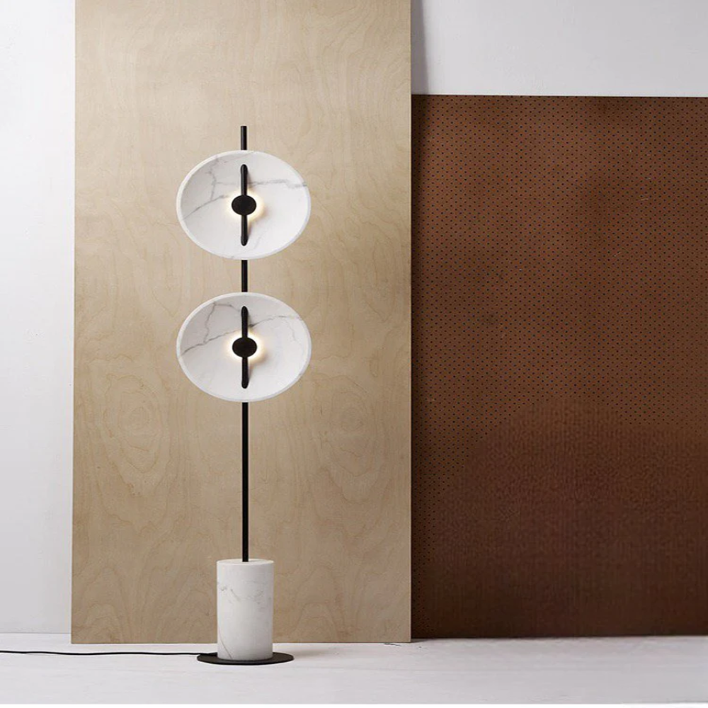elegant Luxury floor lamp with hidden LED light with marble texture circles and natural marble base