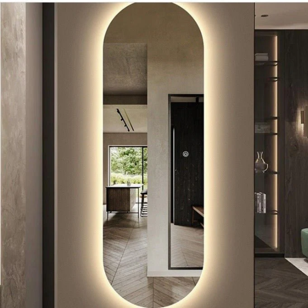 Frameless Oval shape wall mirror with LED hidden lights Changeable color