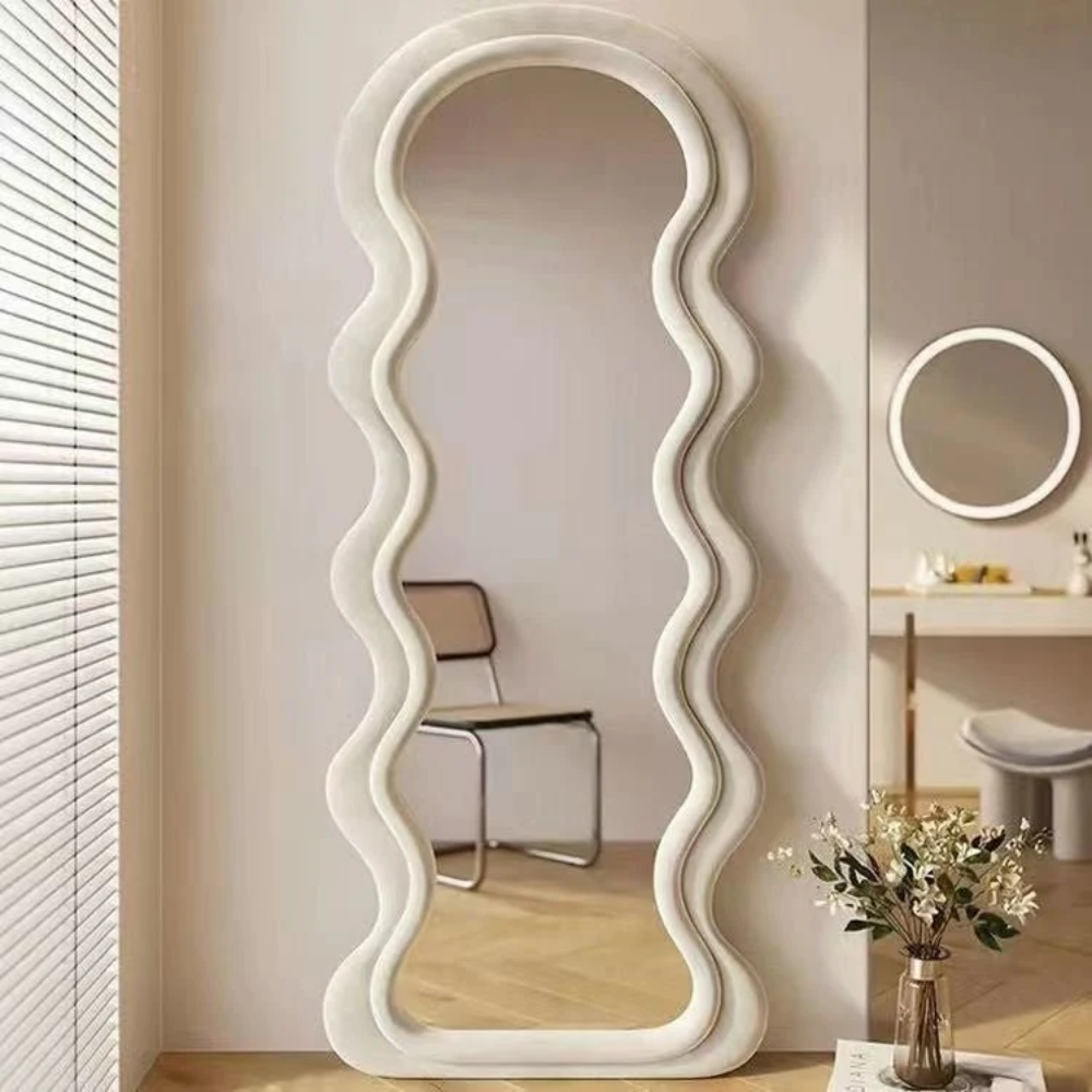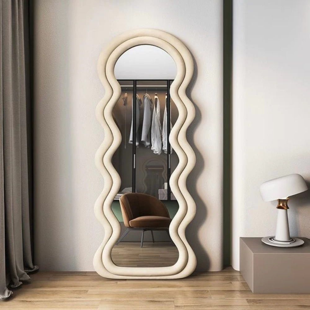 wavy shape and smooth Ofwhite velvet frame, brings both opulence and colour to any room.