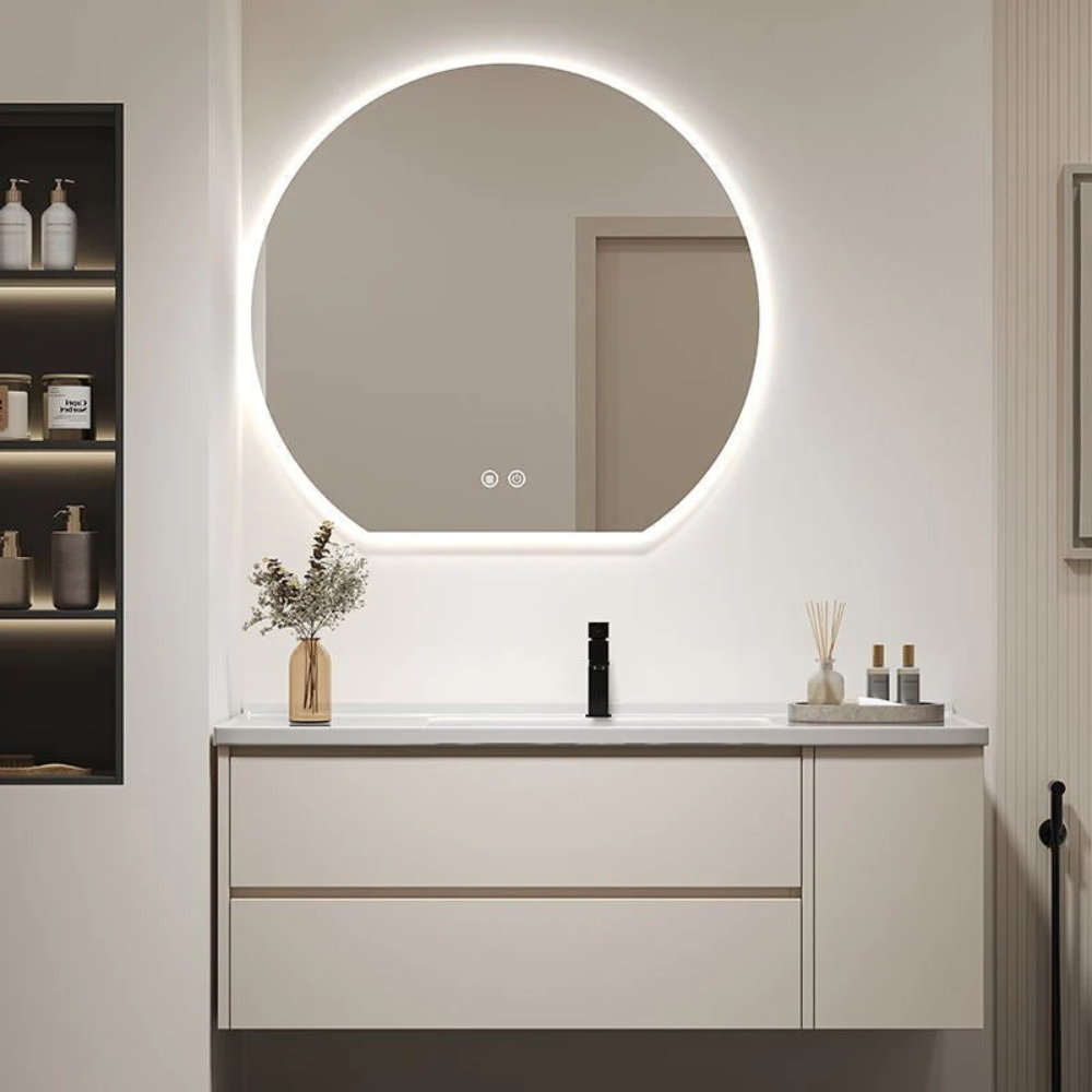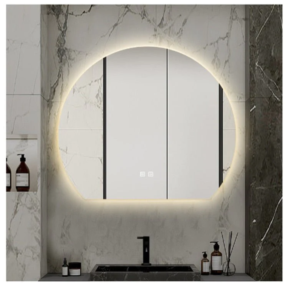Bathroom backlit Luxury Frameless wall,Mirror with unique half moon shape.