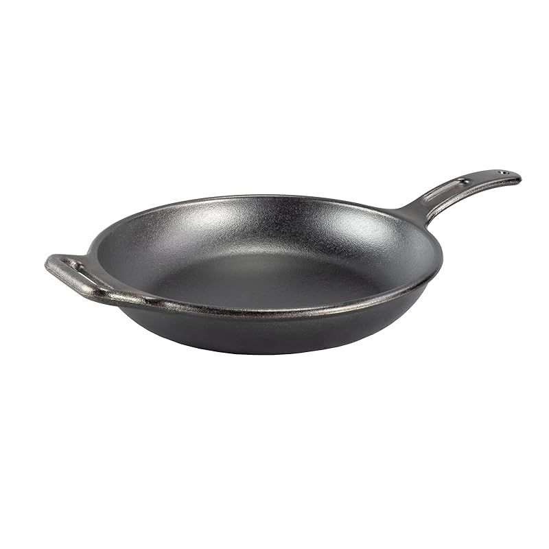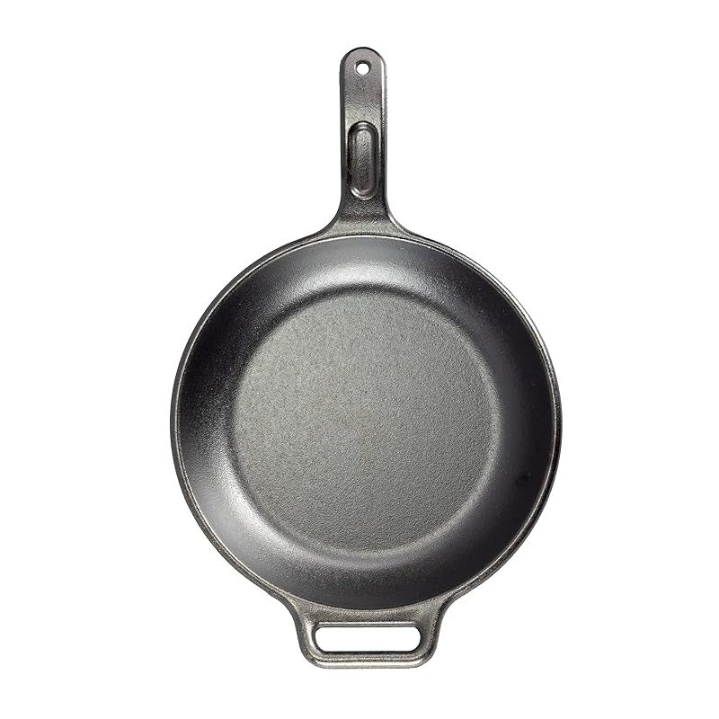 12 INCH CAST IRON SKILLET: Seasoned and ready to use, this generously-sized cast iron skillet features modern handles and sloped sidewalls for flipping, sizzling, sautéing, and stirring.