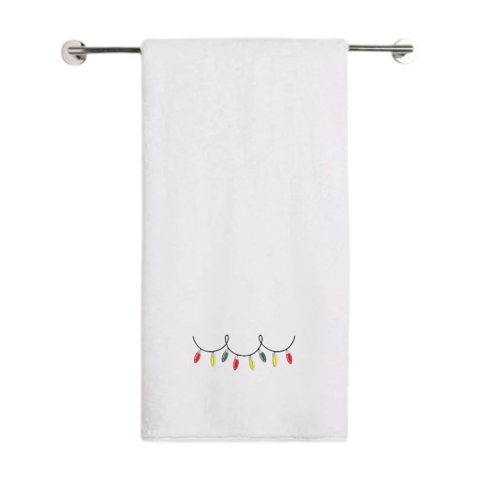 Iris Christmas Embroidered 70 x 140 Cm White Bath Towel - "Christmas Light Garland" Design 100% Cotton - Premium Holiday Collection