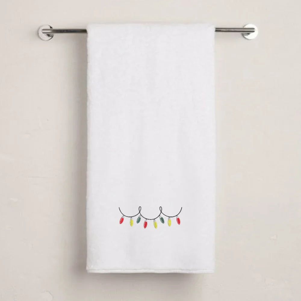Illuminate your holiday décor with the BYFT Embroidered For You Personalised Christmas Towel - Light Garland Design. Featuring detailed multicolor embroidery, this festive towel is perfect for adding Christmas charm to your bathroom, kitchen, or guest space.
