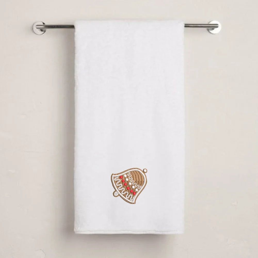 Iris Christmas Embroidered 70 x 140 Cm White Bath Towel - "Gingerbread Bell Cookie" Design 100% Cotton - Premium Holiday Collection