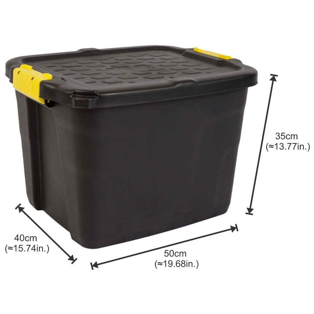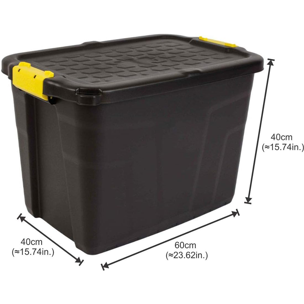 STORAGE BOXES: These heavy-duty plastic storage boxes (42L & 60L) with secure lids are durable and perfect for bulk storage of household, garden, or garage items.
