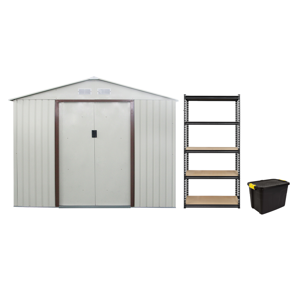 This combo pack offers everything you need for efficient and practical organization. With the strength of metal sheds, a heavy duty shelf rack and the convenience of storage box, this combo provides a complete outdoor storage solution in one package.