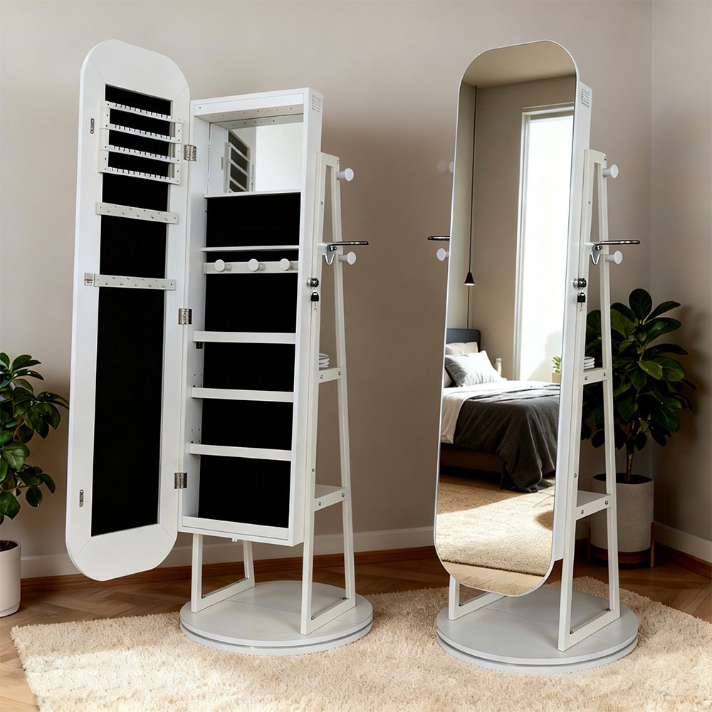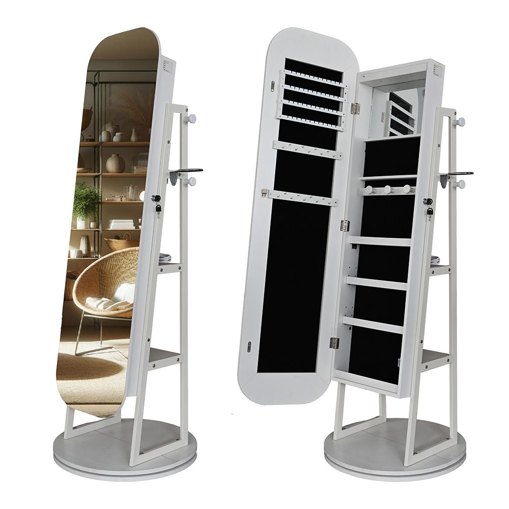 Cammie Free- Standing Jewelry Cabinet With Mirror- White
