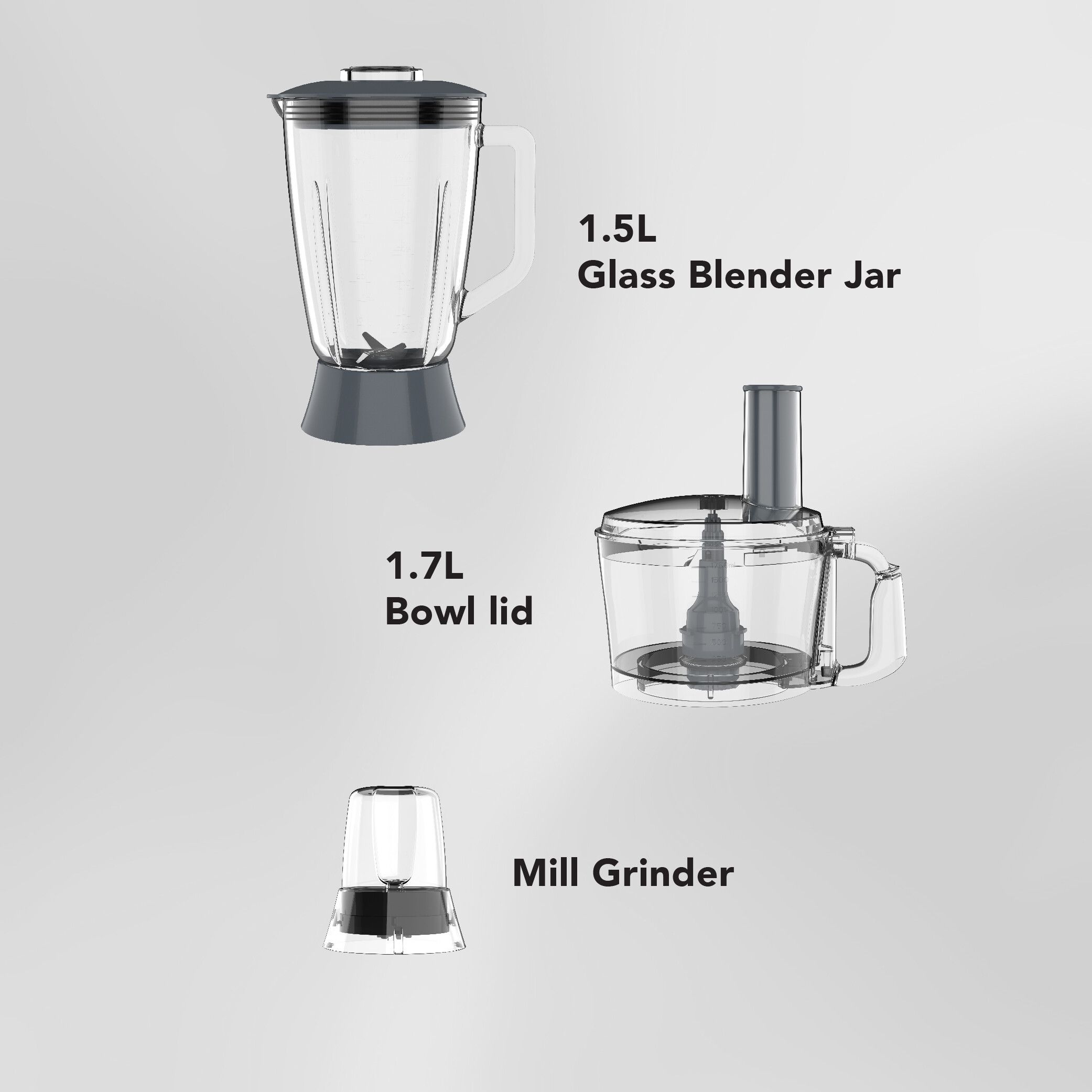 CARRERA CRR568 Food Processor Powerful 1000W Motor with 1.5L Jar, Digital Knob, LED Display & Multi-Function Accessories, Safety Lock Function, Stepless Speed Control, Easy to Use, 2 Years Warranty