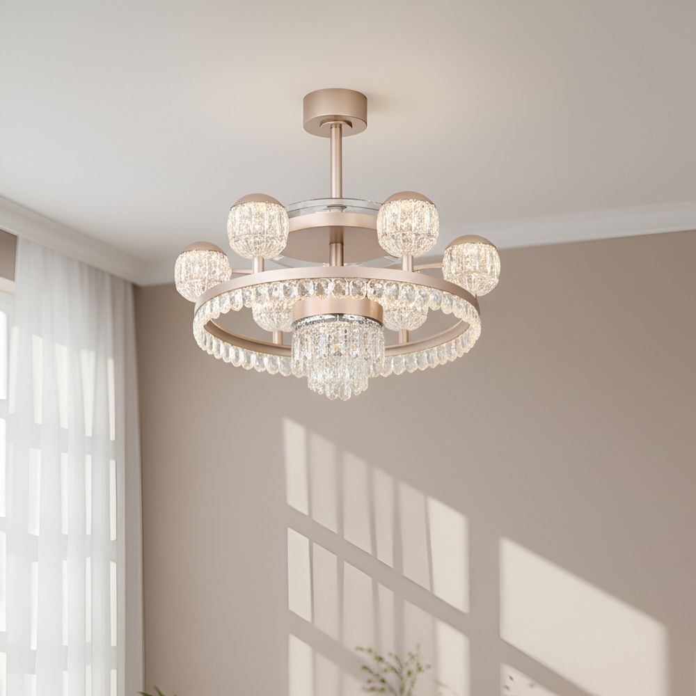 Casa Roma LED Modern Crystal Chandelier With Fan 3 Color Dimmable Light-Champagne Gold