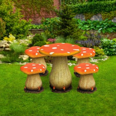 تصميم مرح: تتميز سفرة ماشروم الأسمنتية بتصميم مبدع ومرح مُستوحى من الفطر مما يضيف لمسة من السحر لمساحتك الخارجية.