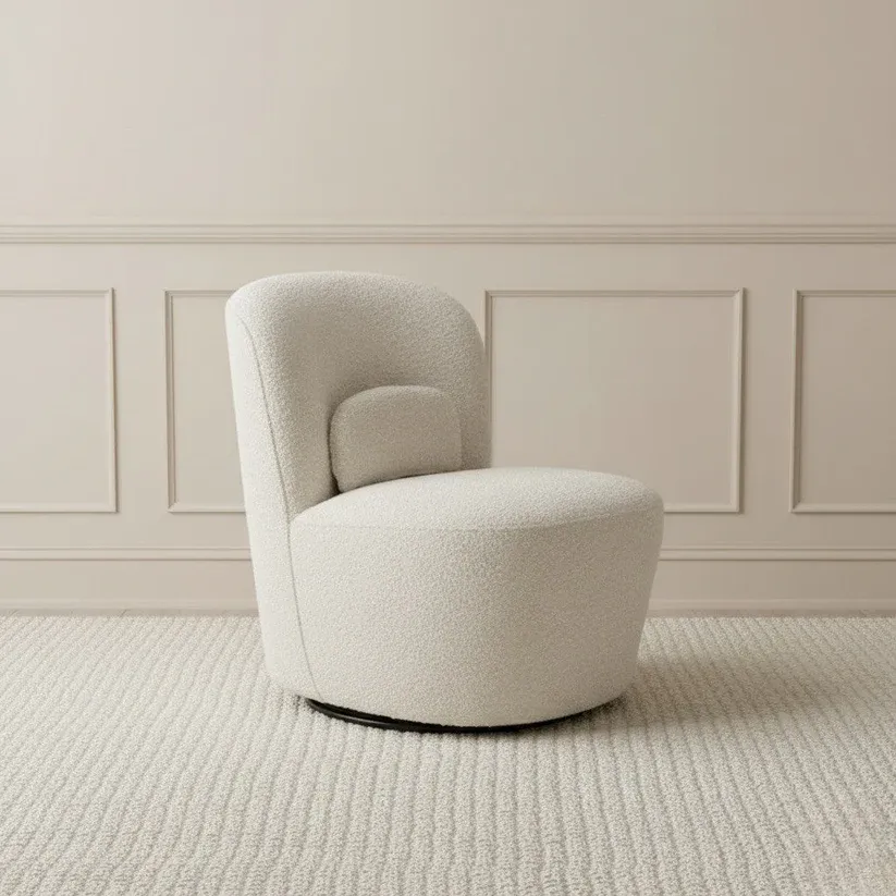 The Chase Swivel Accent Chair is where sculptural design meets everyday comfort. Featuring a generous, rounded silhouette and a smooth 360° swivel base, this chair is made to elevate your space while offering a perfect spot to unwind. Its neutral tone and modern shape blend beautifully into any contemporary home.