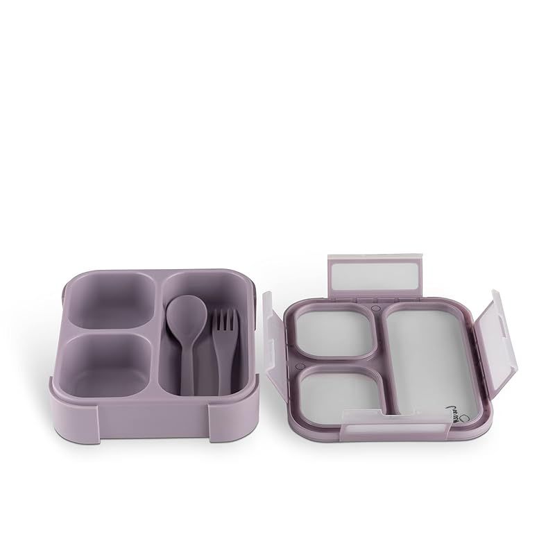 Skip Hop Citron- Bento Box Lunchbox comes with Fork and Spoon | Snack and Portion Control Containers for Kids & Adults | Leakproof and BPA Free- Purple