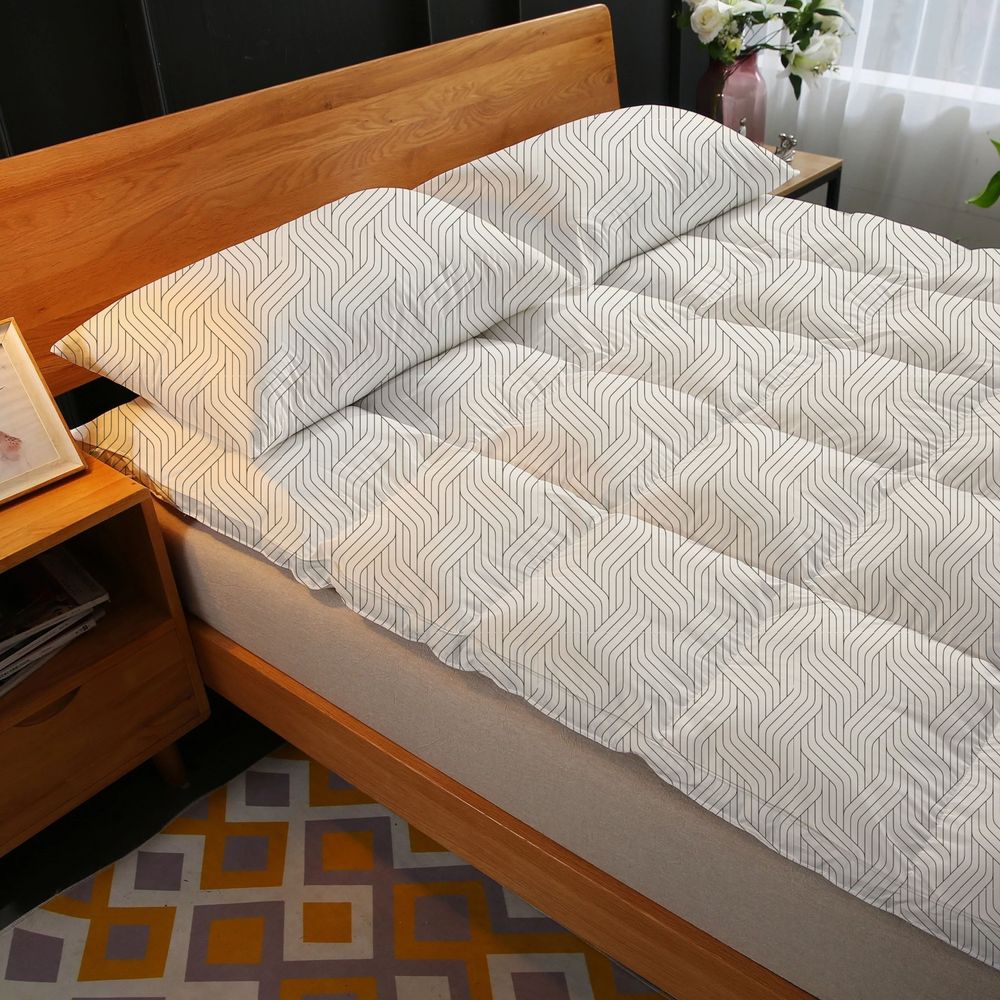 3pc Set PolyCotton Mattress Topper 90x200+8cm with 2 Pillow cover, Off White And Black Geoemetric