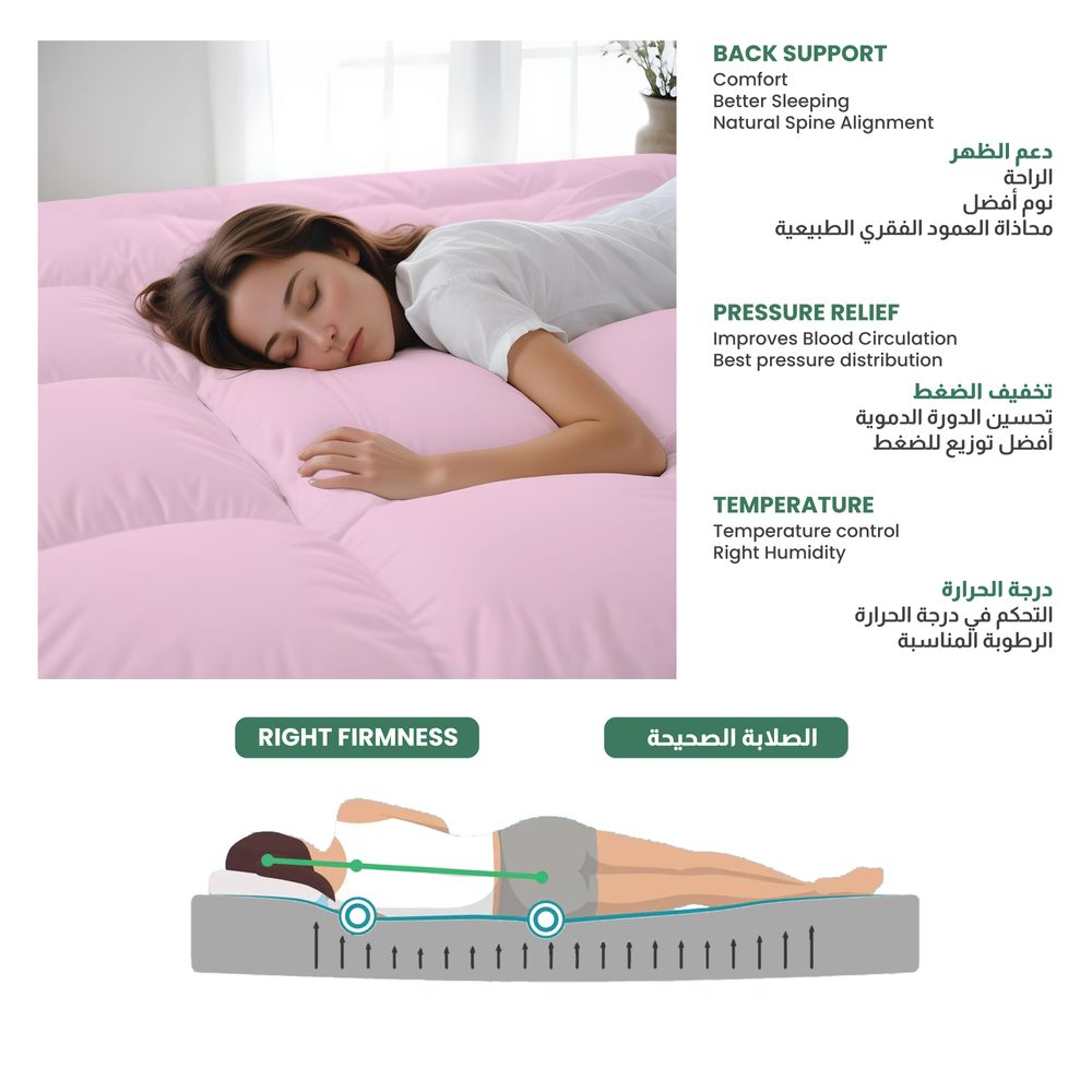 Cotton Home Mattress Topper Pink Super Soft 150X200+7cm