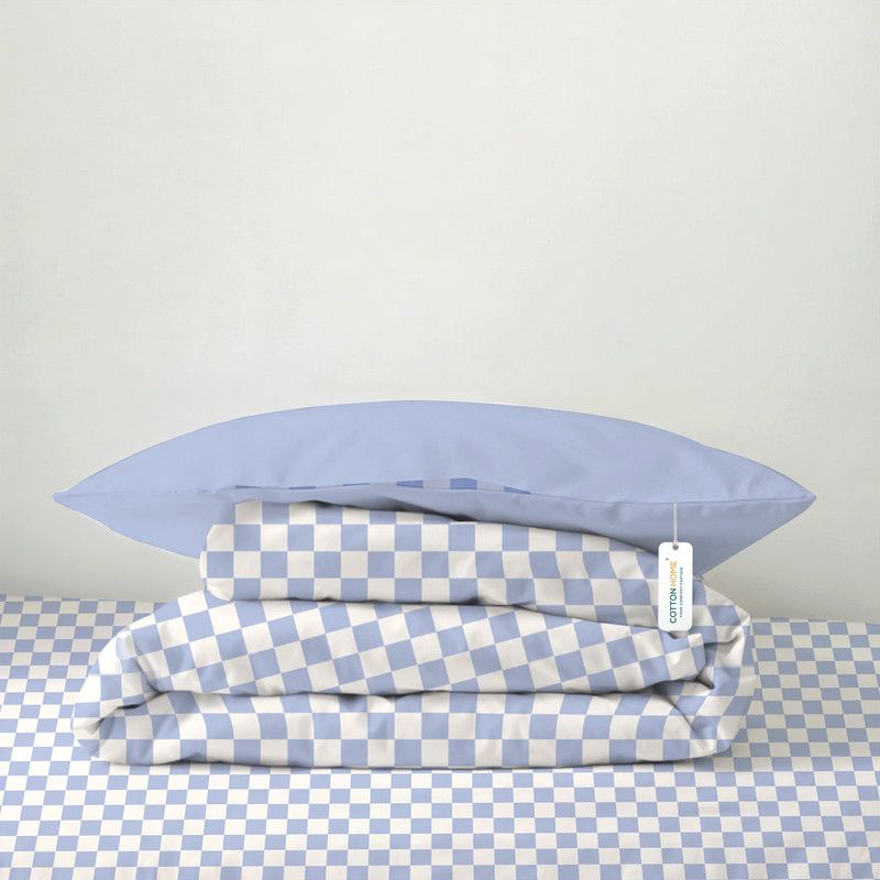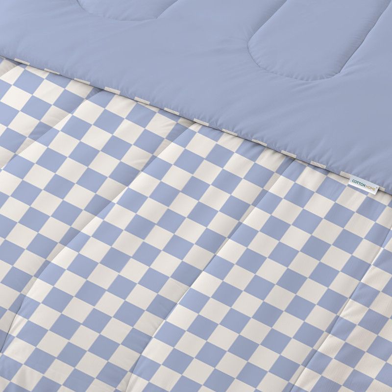 Cotton Home Premium Cotton 4PC Adult Comforter Set Includes 1PC Comforter 160x220cm ,1 Fitted Sheet 120x200cm, and 2 Pillowsham 50x75+5cm , Blue Blocks