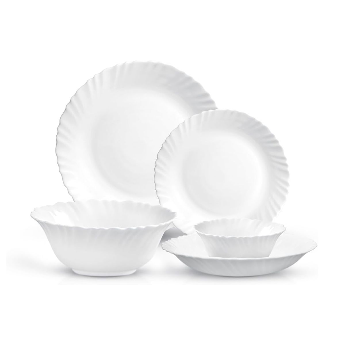 Made from premium-quality opal glass, this dinner set is lightweight, durable, and resistant to chips, scratches, and stains, making it ideal for daily use as well as festive gatherings