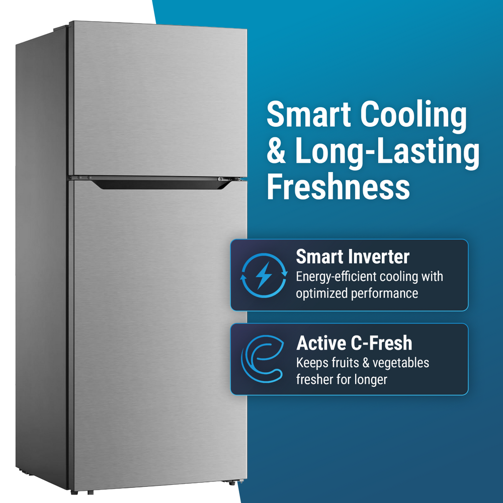 Daewoo Top Mount Refrigerator, Fridge, Inverter Compressor, 413L Capacity, Tempered Glass, No Frost, Stainless Steel, Freezer , Top-Mount, 413 Litre, No-Frost , Inverter Compressor, Tempered Glass , Digital Control, Stainless Steel , Fr-559Vsin
