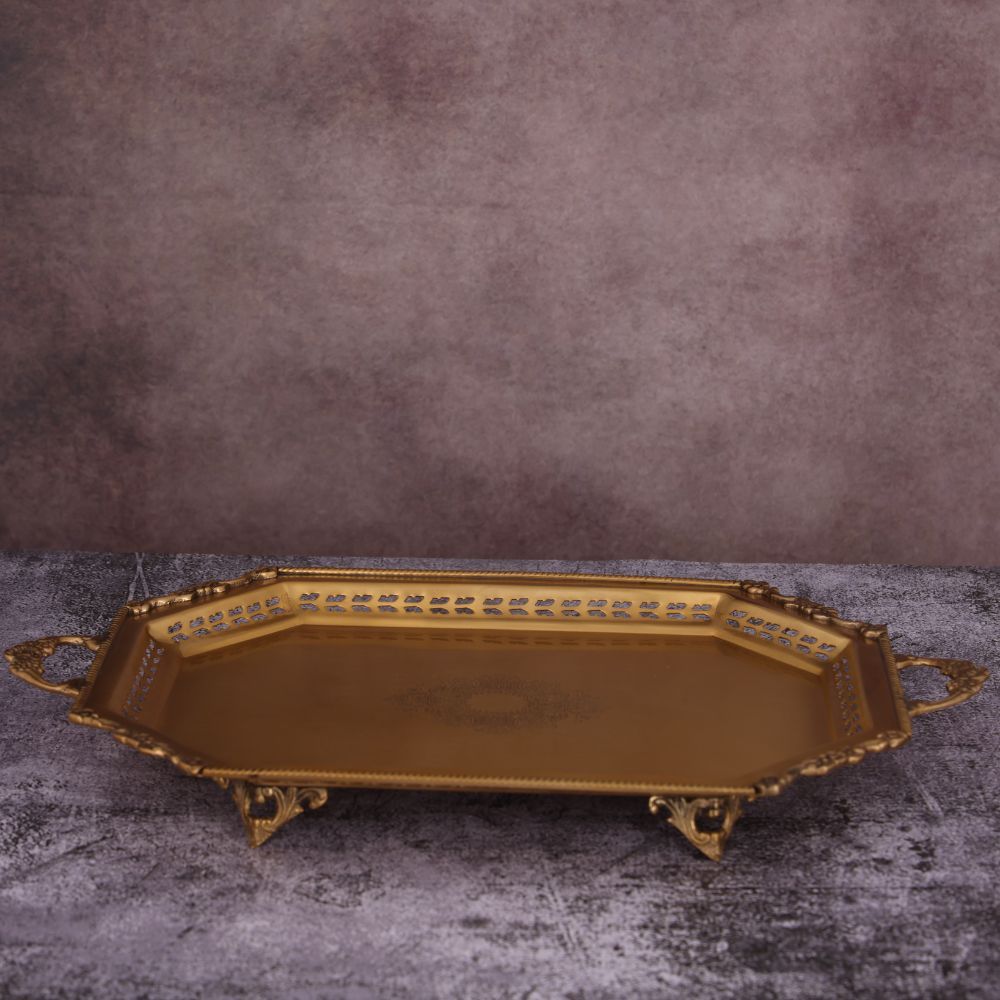 Transform your space with the Decorative Antique Brass Tray by Quesera
