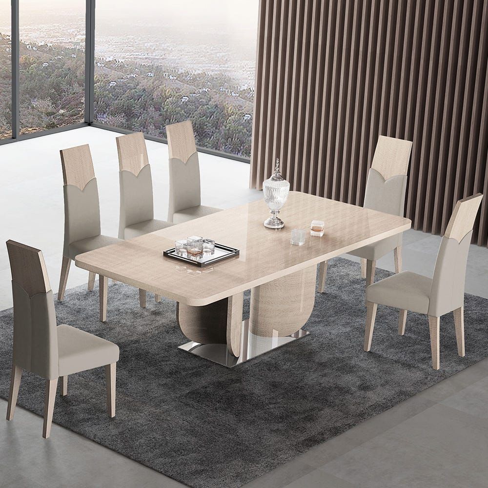 دلفين - طاولة طعام 8 مقاعد - خشبي فاتح / كريمي