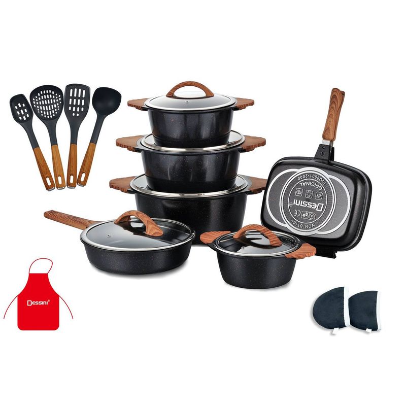 Dessini 19 Pieces Super Granit Cookware Set Black 2060